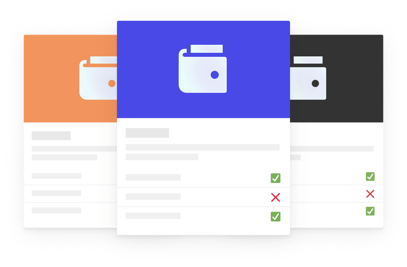Compare wallets based on features